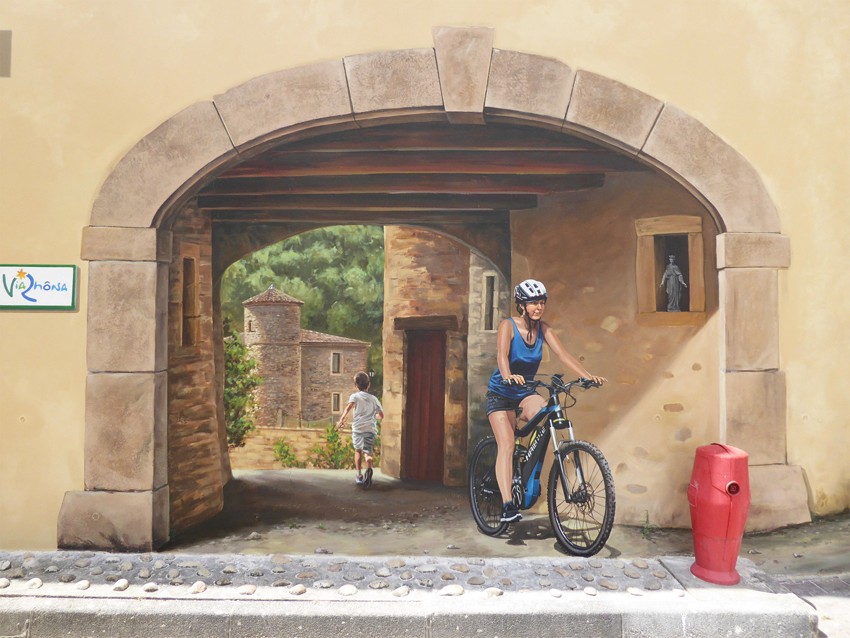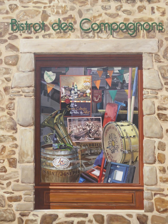 Pour ce grand mur aveugle en plein coeur de ville, bénéficiant d’une visibilité à grande distance, nous avons opté pour un trompe-l’oeil architectural très intégré dans son environnement, posant une atmosphère accueillante et conviviale dans l’esprit chavanois.